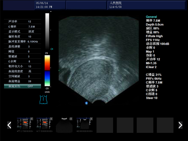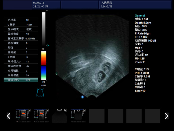 血流圖像:頻譜:B/D、B/C/D CFM:B|C|D、B|C|M、B|C雙實(shí)時(shí)、PW、CFM、CPA